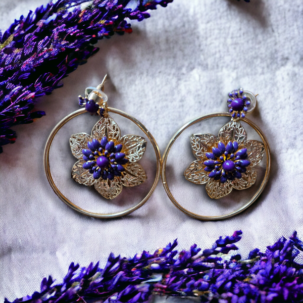 Aros dorados con detalle colgado en varios colores. Coge el que mas te favorezca y luce radiante tus eventos mas flamencos.
