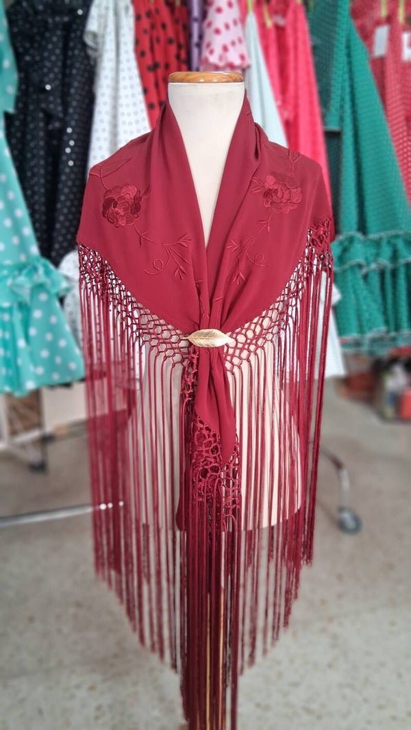 Mantón bordado burdeos unicolor